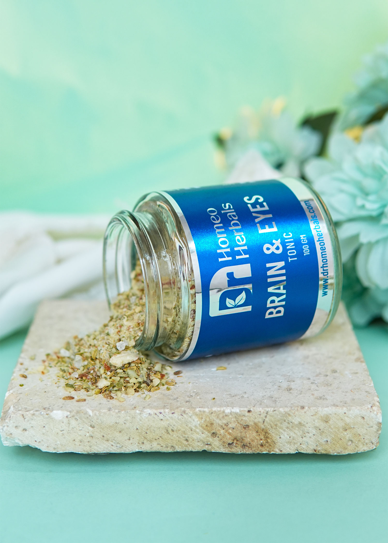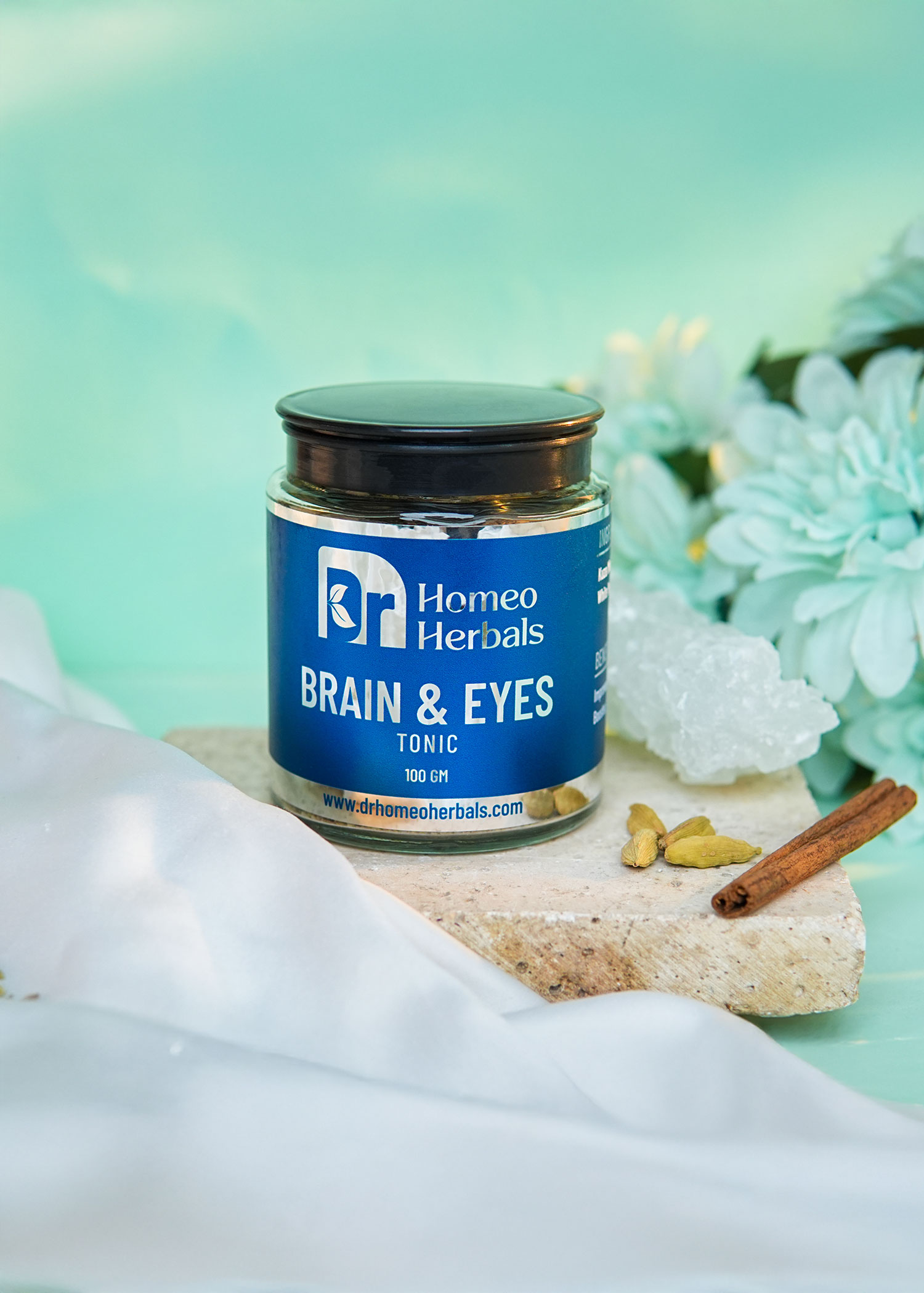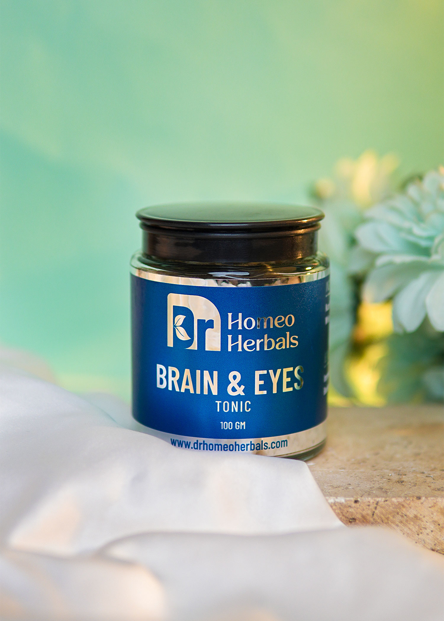 Dr. Homeo Herbals Brain & Eyes Powder is a premium herbal nourishment formula designed to sharpen vision, enhance brightness of sight, boost memory, and strengthen overall brain function. Packed with natural mind-energizing and eye-supporting ingredients, this calming blend helps improve focus, supports long-term cognitive health, and promotes peaceful, restful sleep—making it the perfect daily supplement for students, professionals, and anyone seeking sharper eyesight and a stronger mind, naturally.